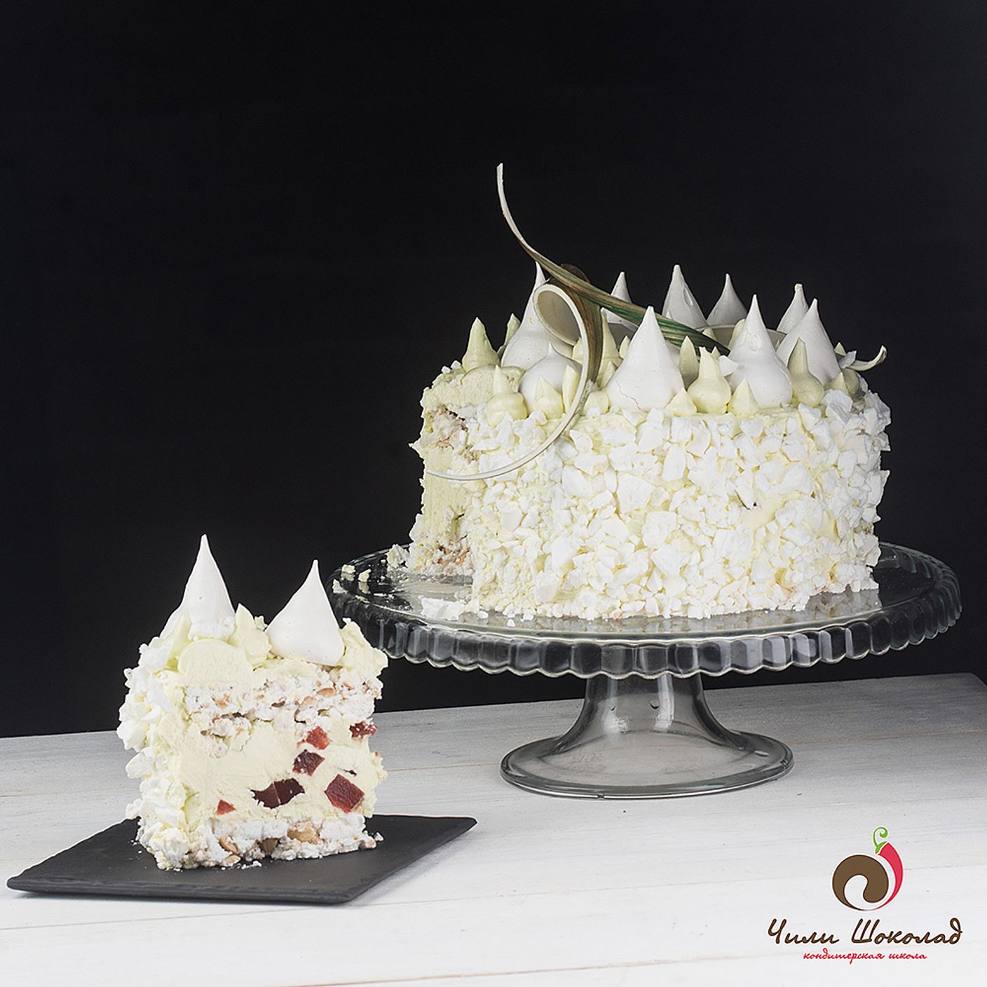 На фото — торт Полет с лаймовым кремом шарлот и землянично-мятным желе.
