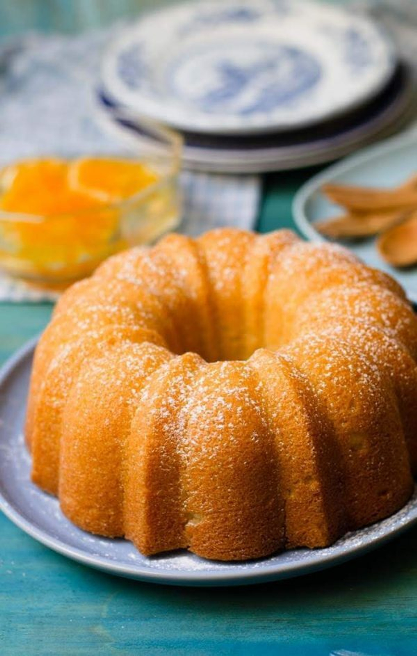 Смазать форму с дыркой 20 см толстым слоем мягкого сливочного масла. В качестве украшения можно положить на дно формы ломтики апельсина. Они впекутся в тесто и будут красиво смотреться при подаче.
