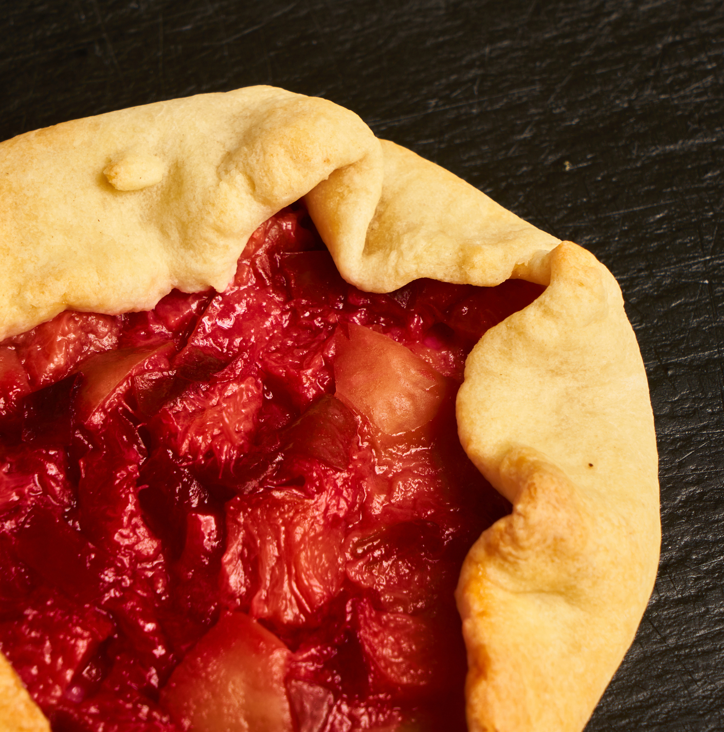 Такой порционный пирог из сложенной вручную лепешки полупесочного теста с ягодами или фруктами называется галета. Мне это название ужасно не нравится. Сразу представляется сухое пресное печенье, и аппетит пропадает. Если вы в этом похожи на меня, давайте назовем этот десерт фруктовой лепешкой, например. Или дадим ему какое-нибудь выпендрежное название типа Арабеск. Суть от этого не меняется. . Вкусная, песочно-фруктовая суть.