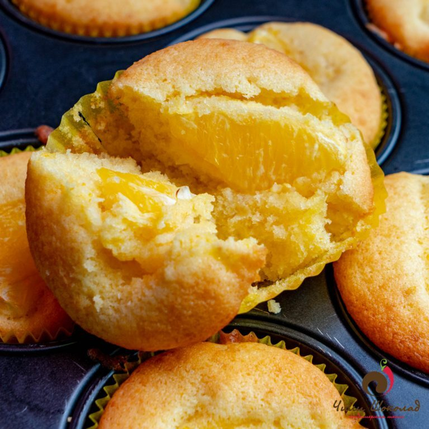 Мы второй лысый апельсин есть не стали, поделили его на дольки и положили сверху на кексики перед выпечкой, получилось вполне красиво.
