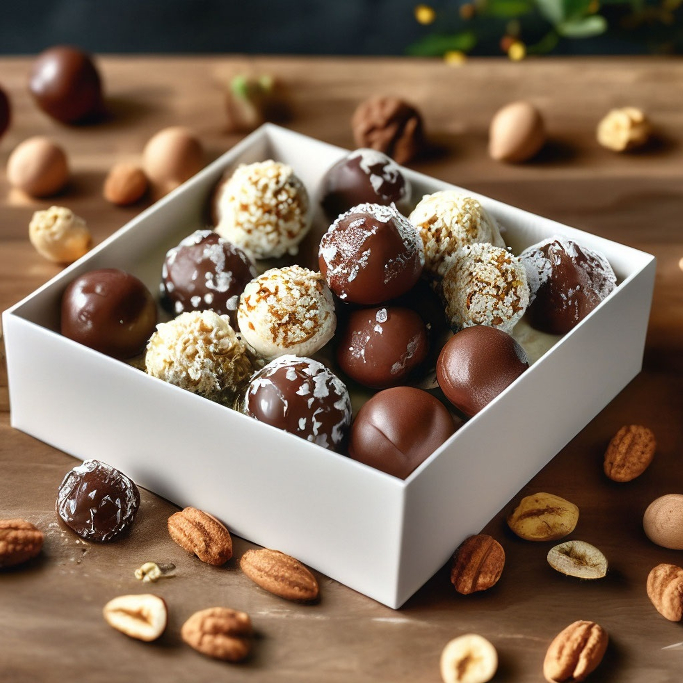 Трюфели должны быть все одинаковые! Желательно отмерять по весам по 8-10 г. Разномастные трюфели выглядят не очень.