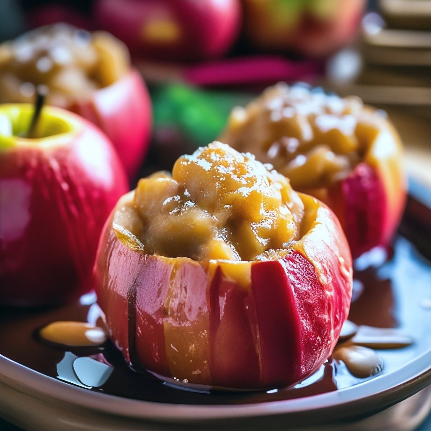 Яблок было, наверное, тонна. Ветви яблонь аж ломались под грузом! Мы уж эти яблоки и раздавали, и пекли из них, и джем делали… И как раз тогда родился этот рецепт. Мы печеными яблоками ужинали тогда. Ставили в микроволновку целый поднос, и на ужин съедали каждый день. Ну а что, очень диетическая еда!