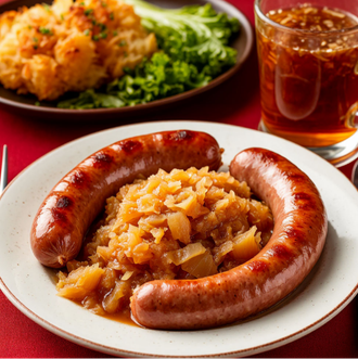 2. Свиные колбаски с тушёной капустой
