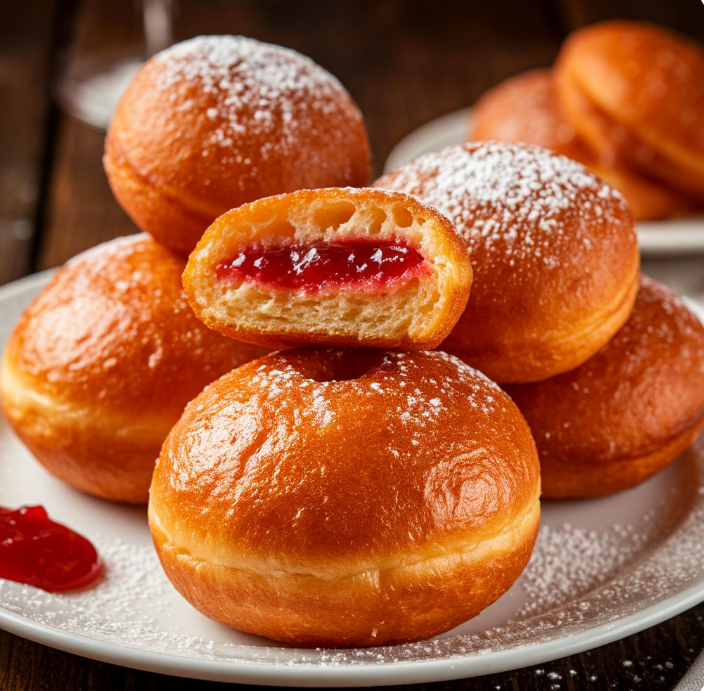 Берлинеры (берлинские пончики) — обжаренные в масле пончики среднего размера из сладкого дрожжевого теста с начинкой.